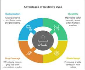 Oxidative dye systems remain the benchmark for permanent hair colouring, primarily because their chemistry delivers depth, precision, and endurance unmatched by other dye classes. Their structural integration explains their exceptional stability and versatility. The key advantages of using these dyes are as depicted in Figure 2: